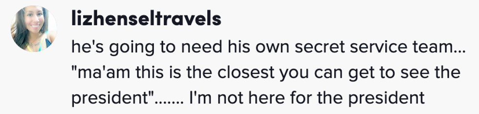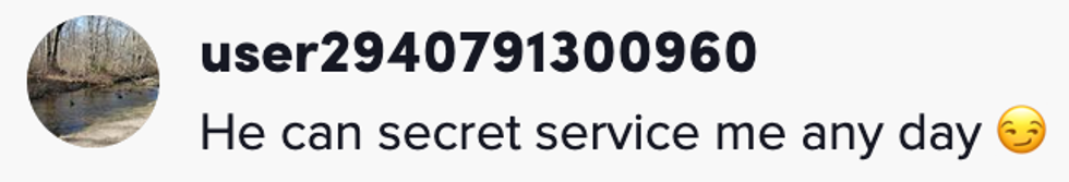 And on TikTok, gawking at the high-security hottie has become a team effort, with TikTokers even directing followers to other accounts in order to get other looks at the agent, like user @magsmur below.