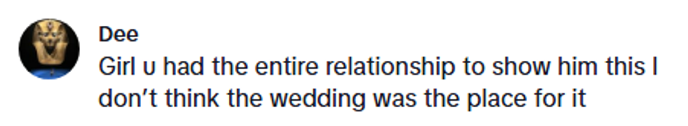 The bride doubled down on her decision, claiming that the comments were "all love."