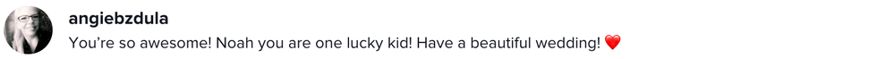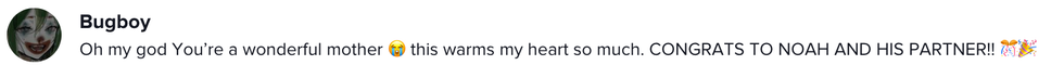 "Noah, this mama is always gonna be there for you. So, I'm proud of you and I'll be there at your wedding."