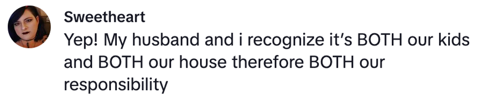 "We have a partnership; I care for my kids, and I don’t help."