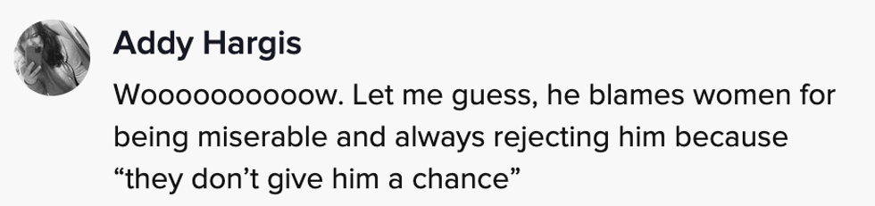"Hence why ur 24, single, and can't get past first dates. This isn't the 1800s, women know their worth, and know there are men out there that won't treat them as a piece of f'king property."
