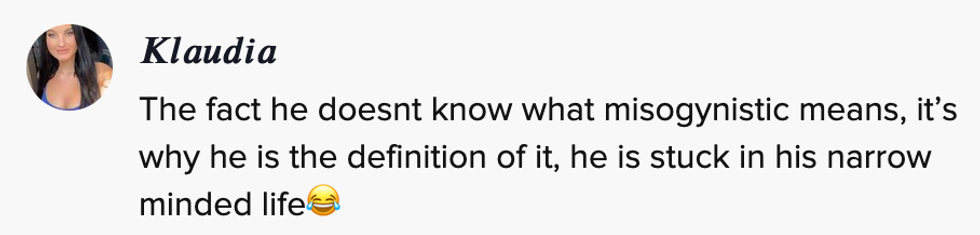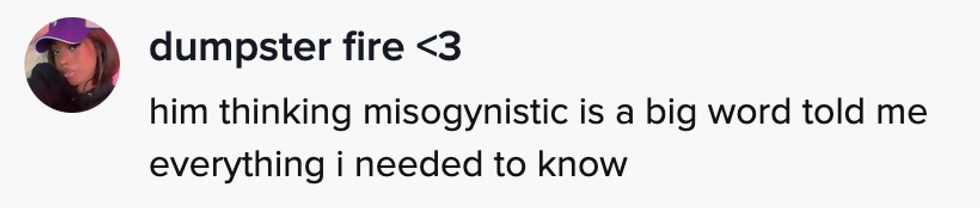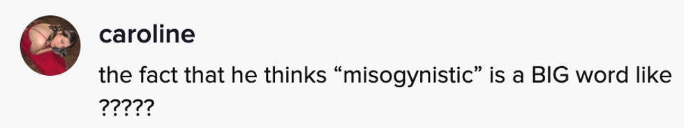 Not getting her clear message, he asked her what "misogynistic" meant.