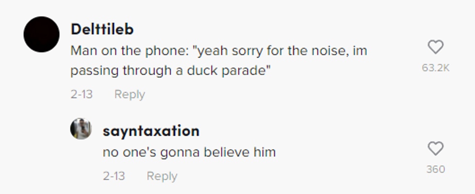 Then there's "phone guy" - who makes his way past the parade while on his phone. He hardly acknowledges the water-fowl waddlefest happening during his commute.