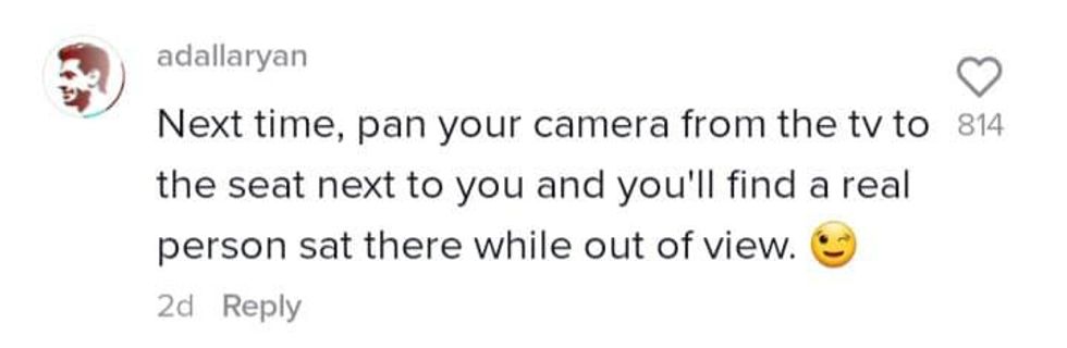 The Tiktoker said “OK, so, am I tripping?” and demonstrated how she was home alone in her apartment, by panning her camera left and right, before sitting on her couch and showing viewers there was a reflection of someone sitting next to her in the reflection of her television.