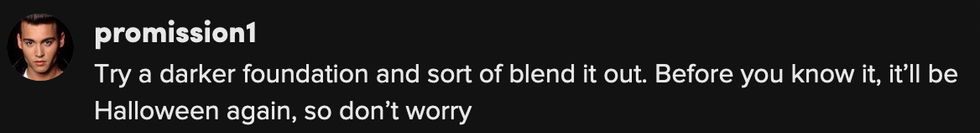 But the look has turned out to be more "trick" than "treat," because unfortunately it wouldn't come off, dooming her to continue looking undead for the foreseeable future.