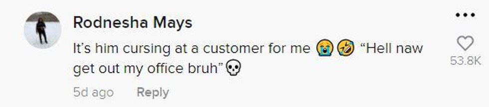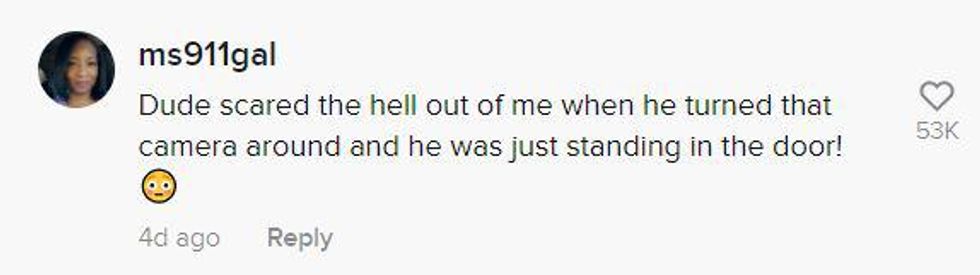 Suddenly, someone, supposedly the manager, appears in the doorway asking why the TikToker was in his office.