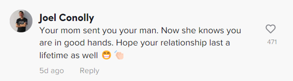 This is one of those coincidences that is overwhelmingly sweet and likely will make Menzies feel much more comfortable, knowing that her mother was involved in her relationship in some small way that she wouldn't be if she were dating another man.