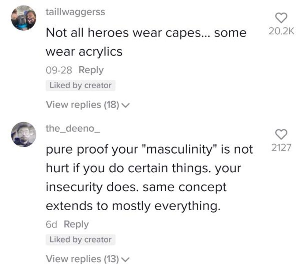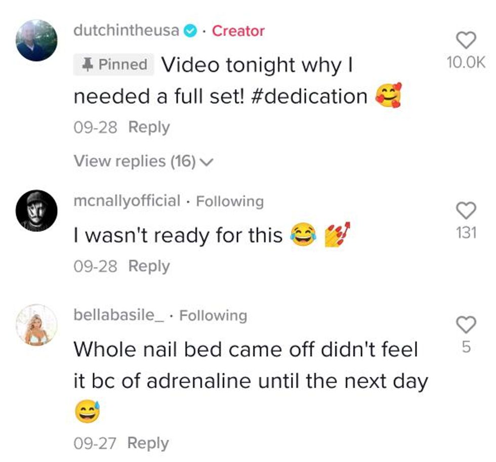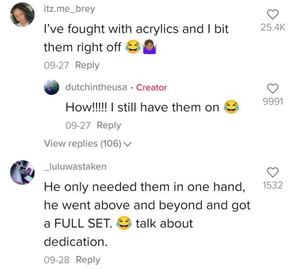 Much of the situation around the idea to show how to hit while wearing acrylics came from Robin responding to another TikToker.