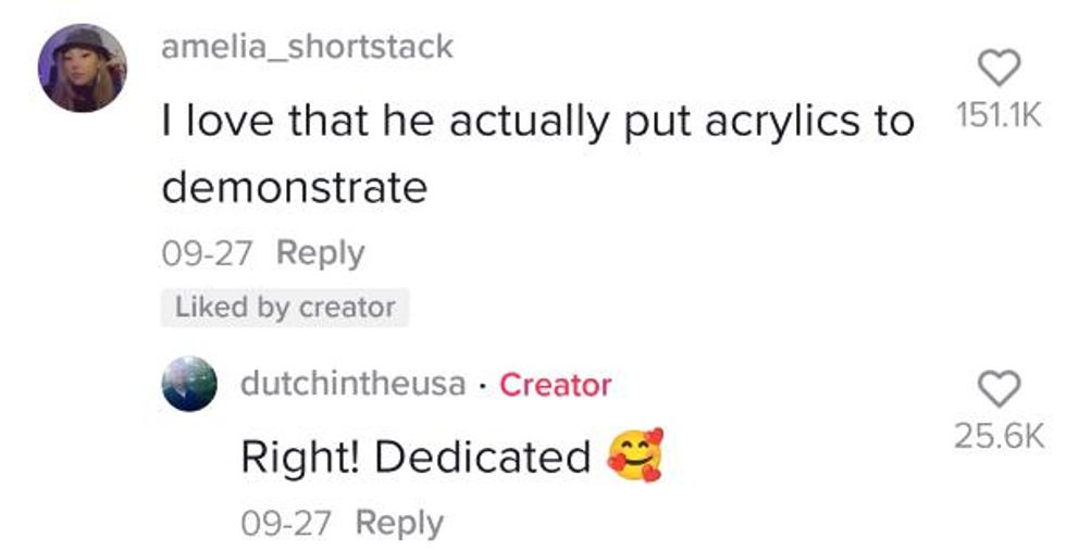Robin, who goes by the name @DutchintheUSA on TikTok, wanted to show his audience how to defend themselves even while wearing long acrylic nails. While he could have just demonstrated the techniques, Robin went the extra mile and actually got bright blue acrylics to better illustrate.