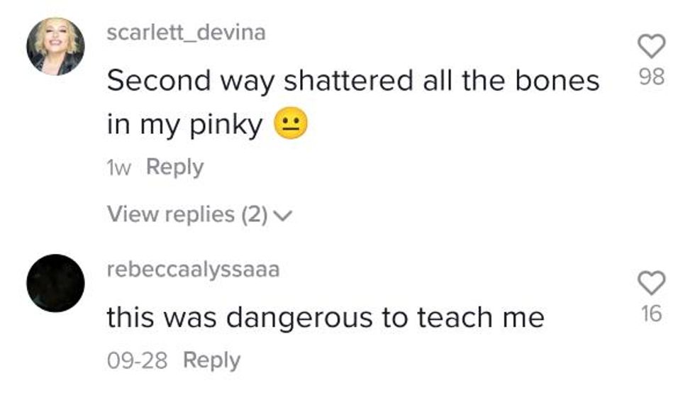 "In my last video, you saw me rolling up my fingers like this to create a fist — obviously, you can't do that. It hurts very, very much."