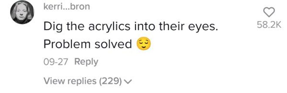 A TikToker is receiving praise for a video showing people how to fight back for self-defense even if you're wearing long acrylic nails. And he ensures you know it works by wearing his own set of bright blue acrylics.