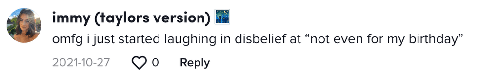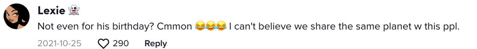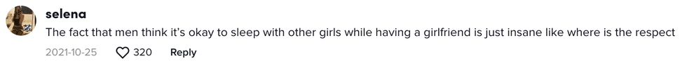 In an eight second video that's been viewed 1.8 million times, the creator Chantel had the words, "Remembering how my ex took me out to dinner with his mum so they could both try to convince me to let him cheat on me for his birthday," on the screen.