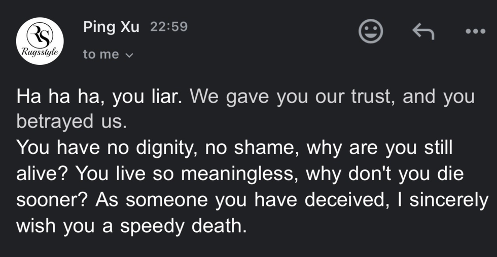 Romarate said her correspondence with Rugsstyle was "crazy" and "unprofessional" for any company.