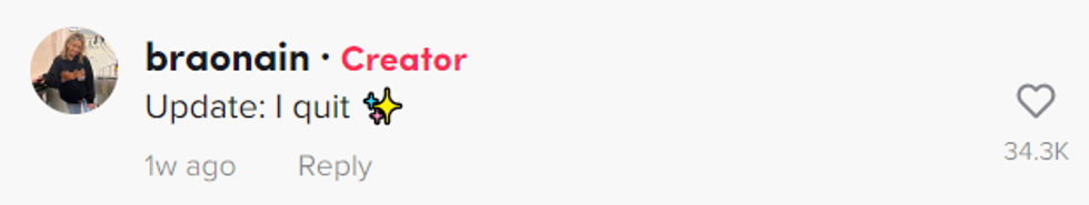 Because while braonain may have gone into this wanting to make a joke about how she planned to care for herself while on the job that particular day, she came away not feeling as great about her working conditions.