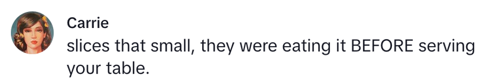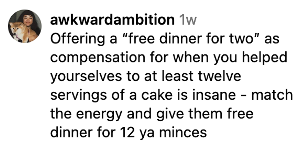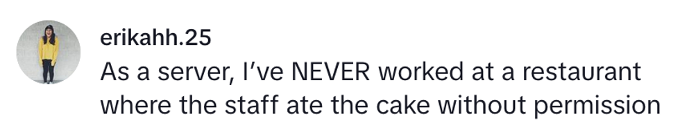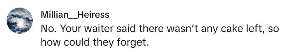But when he asked the server about the remaining half of the cake, he was told there wasn't any.