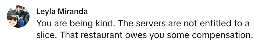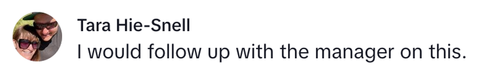 In a follow-up TikTok, Nordheimer addressed a commenter who suggested they would "follow up with the manager on this."