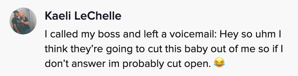 A woman in active labor posted a TikTok video of herself having additional anxiety over sending a text explaining to her boss why she was calling out sick.