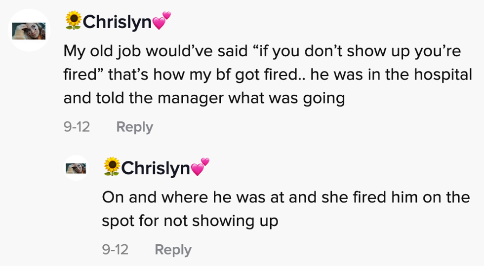 Marissa Peirce, a.k.a. @mpmoney27 on TikTok, captioned her video post with, "labor is stressful, calling out is even more stressful."