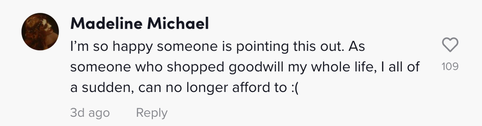But it's evident from the very beginning of the short video that she did not end up purchasing, as she expressed her shock and disappointment with Goodwill in both voice over and overlay.