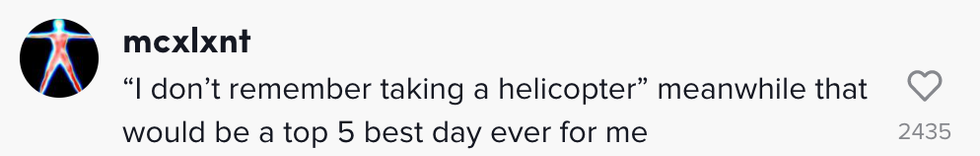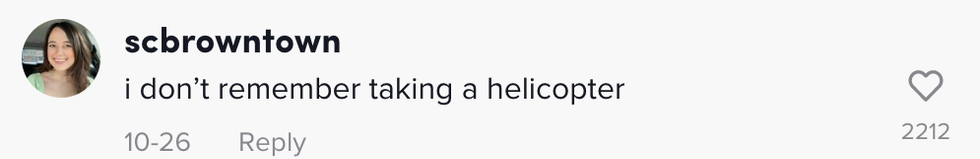 The first amount was $250, to which the person replied, "I don't remember taking a helicopter."