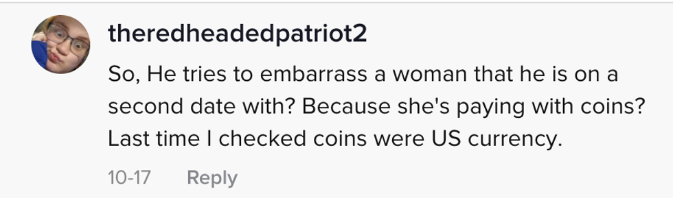 A man has sparked backlash on TikTok after appearing to shame his Tinder date for paying for her half of the date with coins.