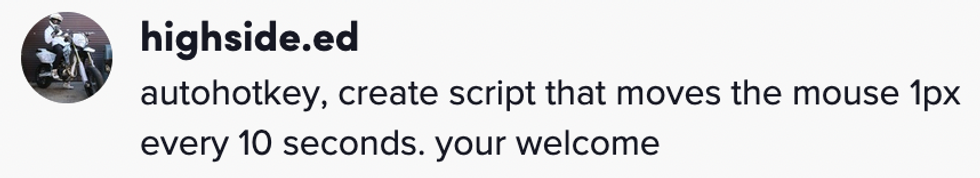 But there are actual real-world solutions for this problem that are soaring in popularity during the pandemic, such as mouse-jigglers—either software or actual devices that move your mouse or cursor for you every so often to make sure you appear "online" to your boss.