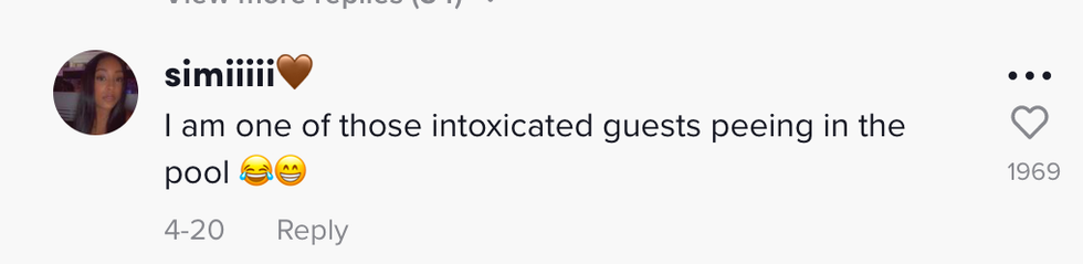 "There was literally intoxicated guests admitting that they were peeing in the pool here."They further expressed horror at the unsanitary situation in the video's caption.