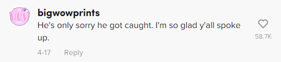 In the follow-up video, the other man at first tried to deny what he had done and then tried to say he had done so accidentally, even though Elle had him looking around for witnesses.