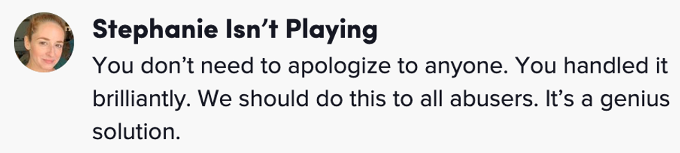 "What the heck was I supposed to do? So yes, what I did was wrong, but I absolutely would have done it again. I don’t care, that guy was evil.”