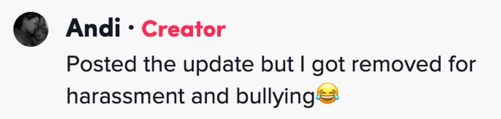 She said a follow-up clip with an update was taken down for "harassment and bullying."