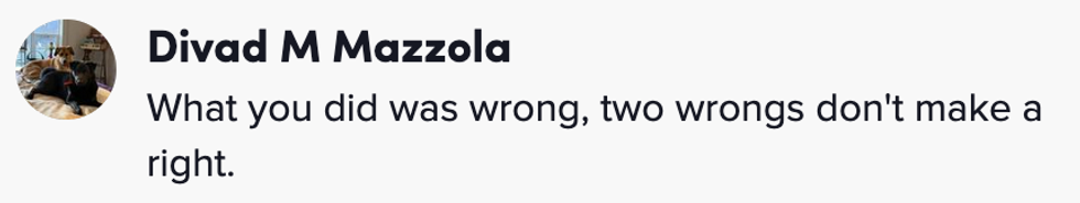 In response to a commenter who said, “What you did was wrong, two wrongs don’t make a right," Wilson posted a follow-up video in which she provided more context.