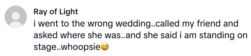 "It’s true, oh my gosh I’m at the wrong wedding."