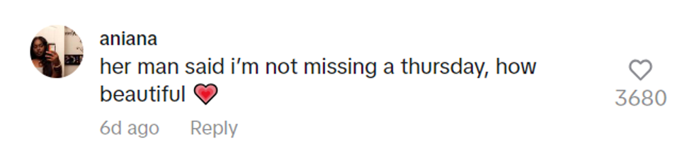 "Cue the waterworks on my end, because in case you all haven't figured it out yet, today is Thursday."