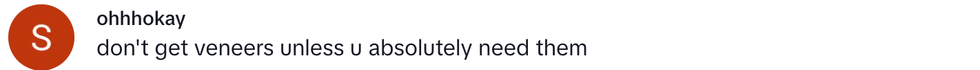 People in the comments agreed with the TikToker's warning against getting veneers.