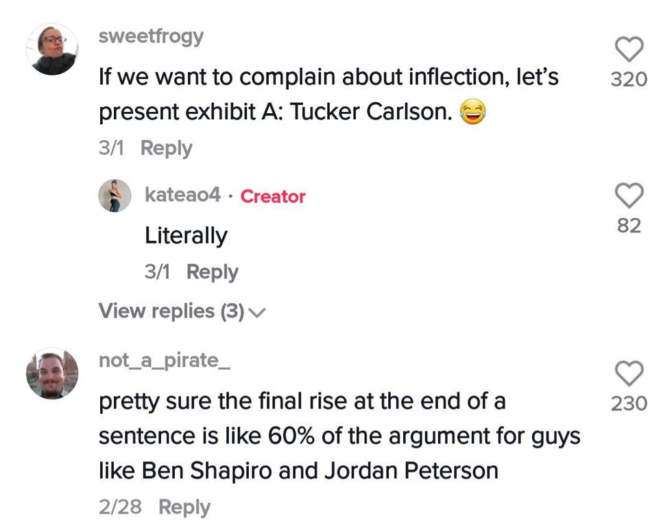 This time, Kate responded directly to one of those comments, using it as a teaching tool to drop some micdrop lessons. She talked about speech patterns, socio-linguistics, and how young women (many of whom sound just like her and are just as brilliant) are becoming the new face of professionalism.