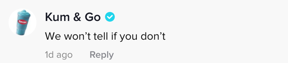 A Kum & Go, to be specific, whose TikTok account cheekily replied to the prank: