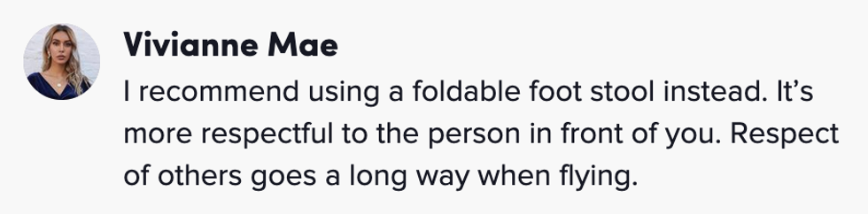 It may be an ingenious form of comfort for any jet setter, however her demonstration caused some turbulence online for a hygienic issue.