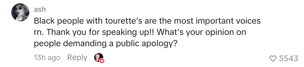 “Coprolalia causes involuntary swearing and inappropriate tics. This can include the N-word, slurs, etc. I am a black person, and even I have the N-word tic and slurs as tics. This is something I don't see many talk about because of situations like this.”