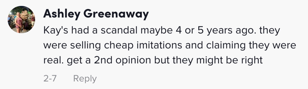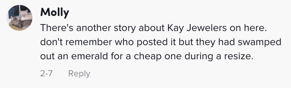 Kay Jewelers have attracted attention for some time for often swapping out their diamonds with cubic zirconium and raising the price to the price for normal diamonds, only to have the buyer try and return it and be stricken with the bad news.