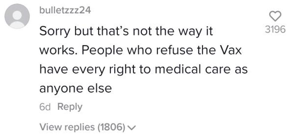 His idea that people who willingly don't get the vaccine shouldn't seek treatment when they catch the disease.