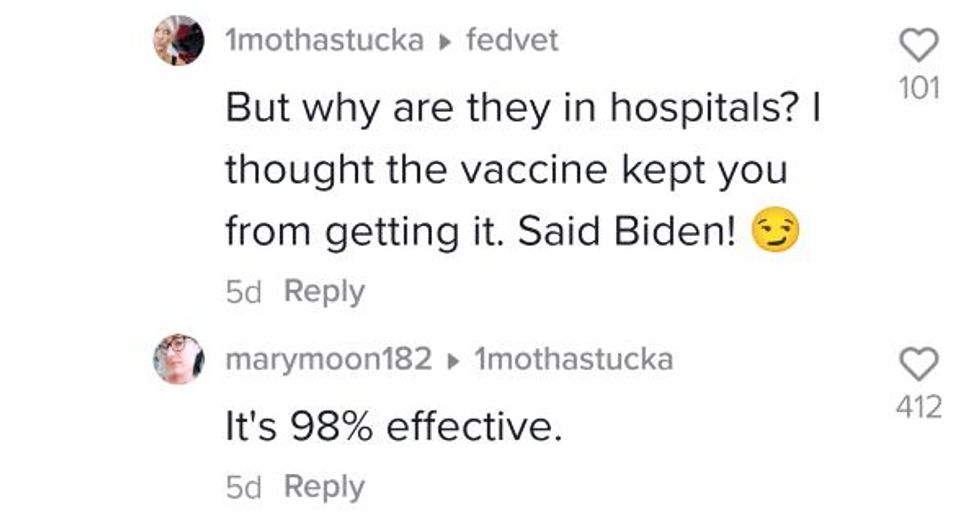"If you really f***ing believe that [the virus] is not real, and you really believe that's not a big deal, and you really believe that you don't need to get the vaccine, that's your f***ing right. I'm not gonna argue with you about that."