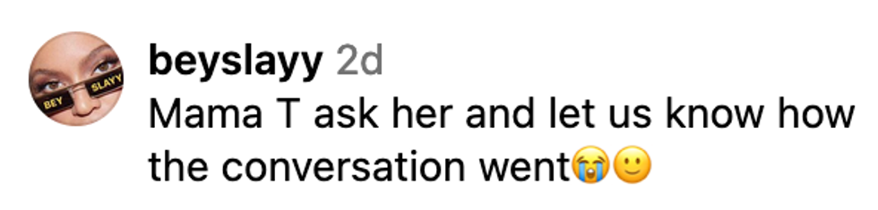 On Sunday, Momma Tina shared a clip of the Can I Vibe With Y’all podcast hosts Cazo Wilborn and Chris Mathis singing along to the song in which Queen Bey sings about her love for the "huge ego," or penis, of her main man.
