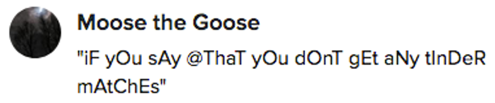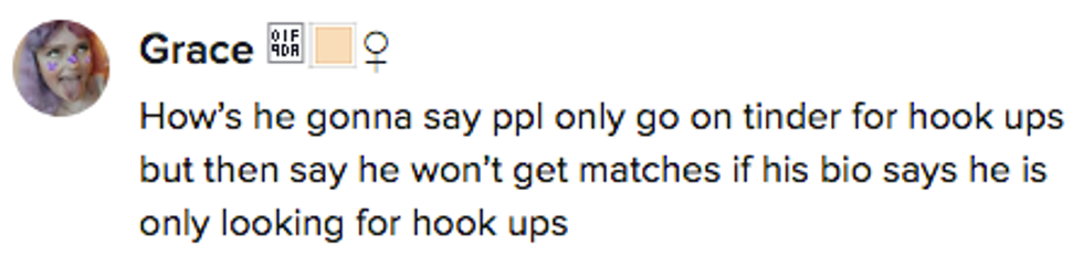 "That's how adults do it. They don't use Tinder to date, they use Tinder to f**k."