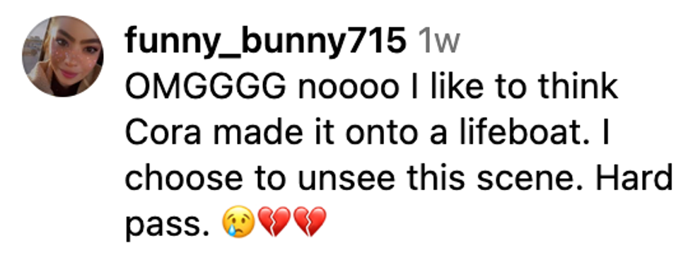 Well, obviously, the ship goes down and the people in the third-class steerage decks, like Cora, were the first to go. But when it came to the little girl's demise, it was a no-go.