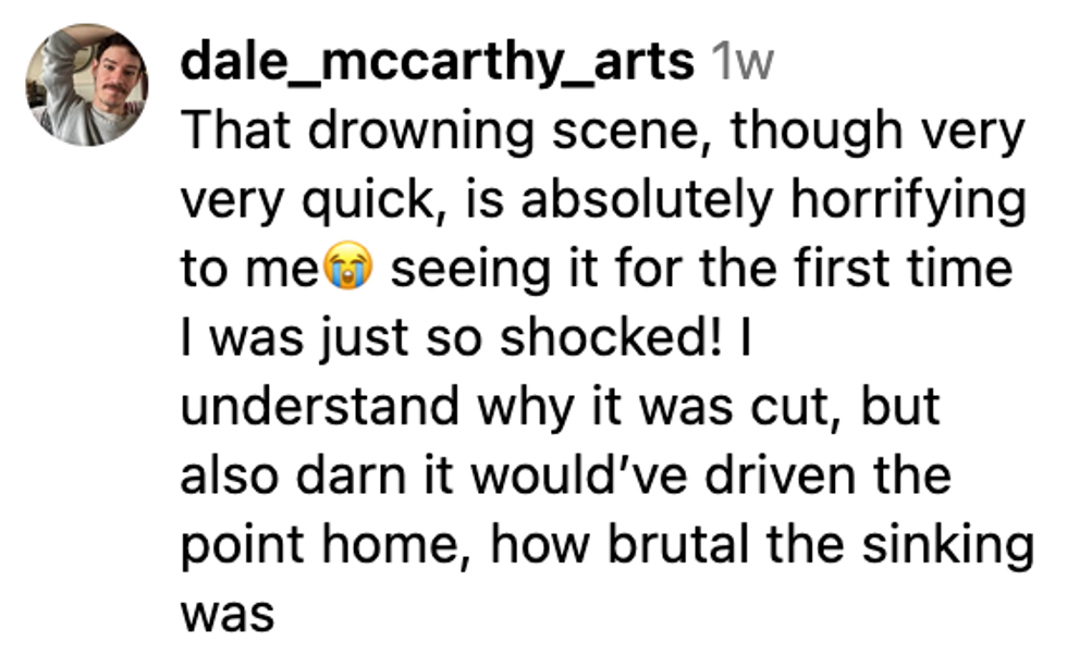 On social media, many 'Titanic' fans were shocked by the revelation, with some wishing the scene had been left in and others grateful it was cut.