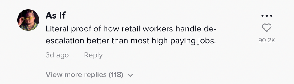 It is unclear from the video what caused the incident to occur but one thing is for sure, this retail employee can add 'deescalation' to her resume as a coveted skill.