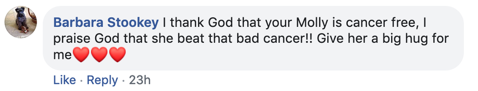 But Molly is a fighter, and her 15-month-long battle with cancer finally came to an end with the best news.