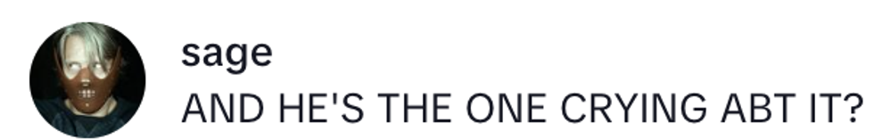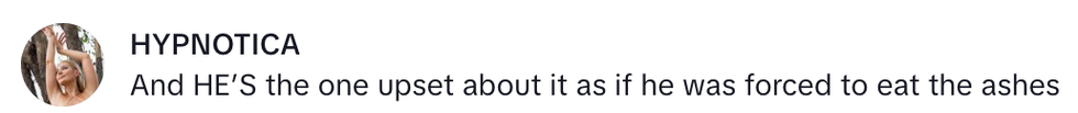 “Oh my God. When your son eats your dad’s ashes,” Emeny exclaims, panning to a brown urn as Koah begins to cry.