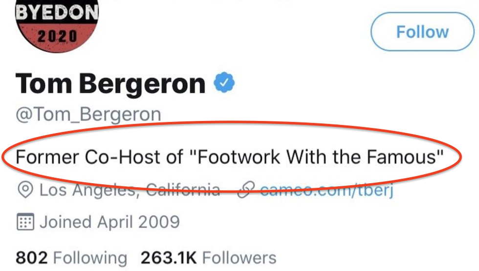 Fans have now noticed the level of salt in Tom's new twitter bio which he changed to “Former Co-Host of 'Footwork With the Famous'."