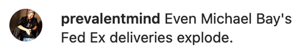 Bay revealed what looked like a baked good completely annihilated en route and it wasn't a scene from any of his action-packed blockbusters.